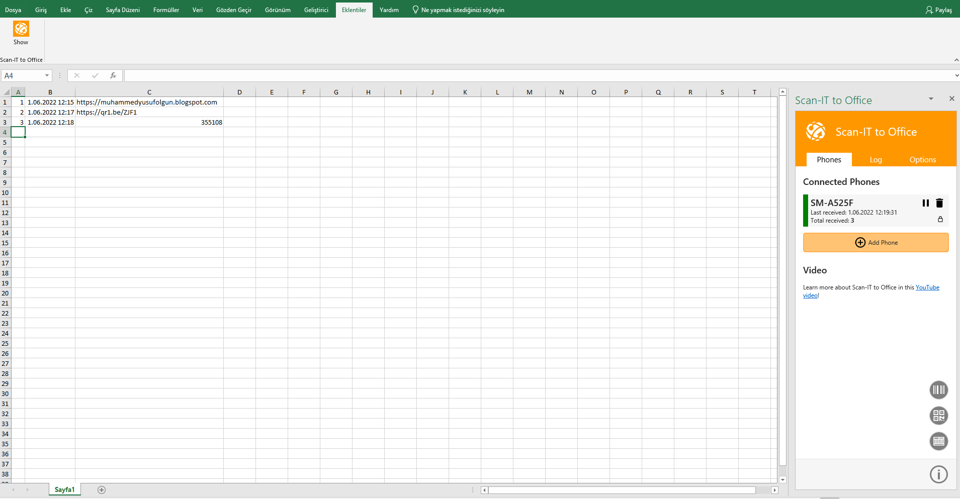 Telefonunuzla barkodları okuyup istediğiniz içerikle bilgileri anlık olarak bir Excel listesinde toplamanız bu uygulama ile mümkün olabilmekte. Ürün inceleme adımları aşağıdaki gibidir.