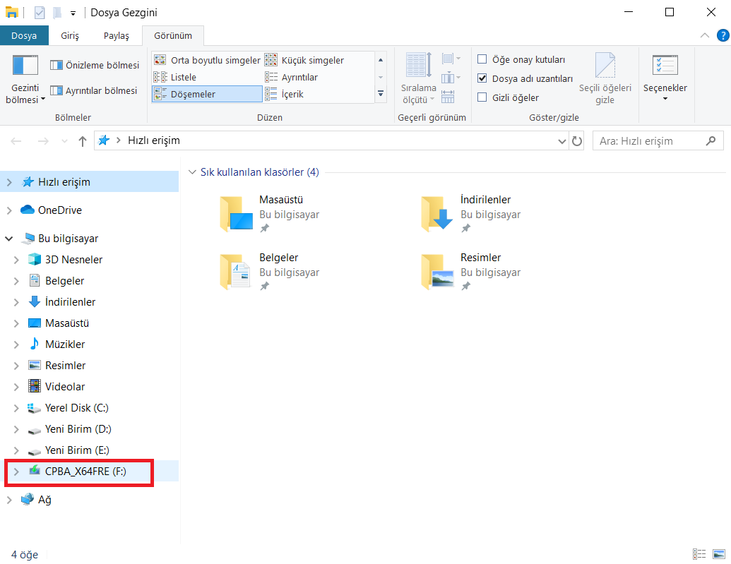 Bilgisayarıma takmış olduğum USB bellek ve dosya gezgininde ki görünümü: