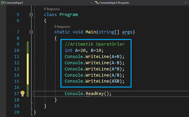 Karşılama mesajı: Console.WriteLine("Hello World!");